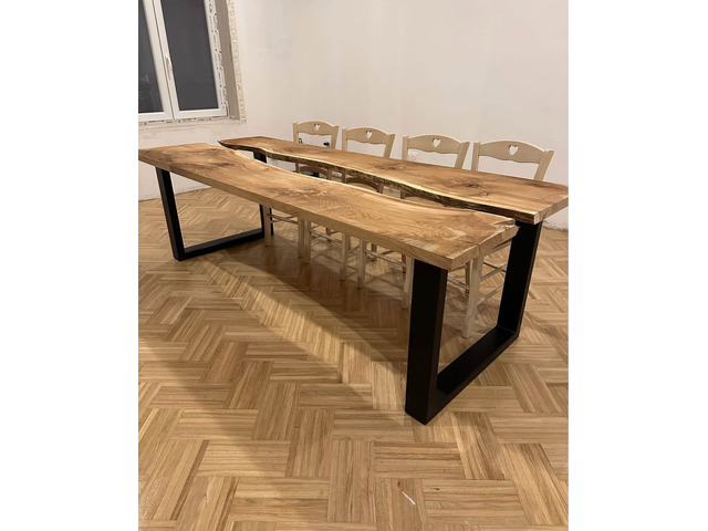 Son plateau en chêne massif révèle un veinage naturel sublime, travaillé avec soin pour une finition authentique et durable. Ses dimensions généreuses (240 × 100 cm) permettent d’accueillir 8 à 10 convives dans un confort absolu.
